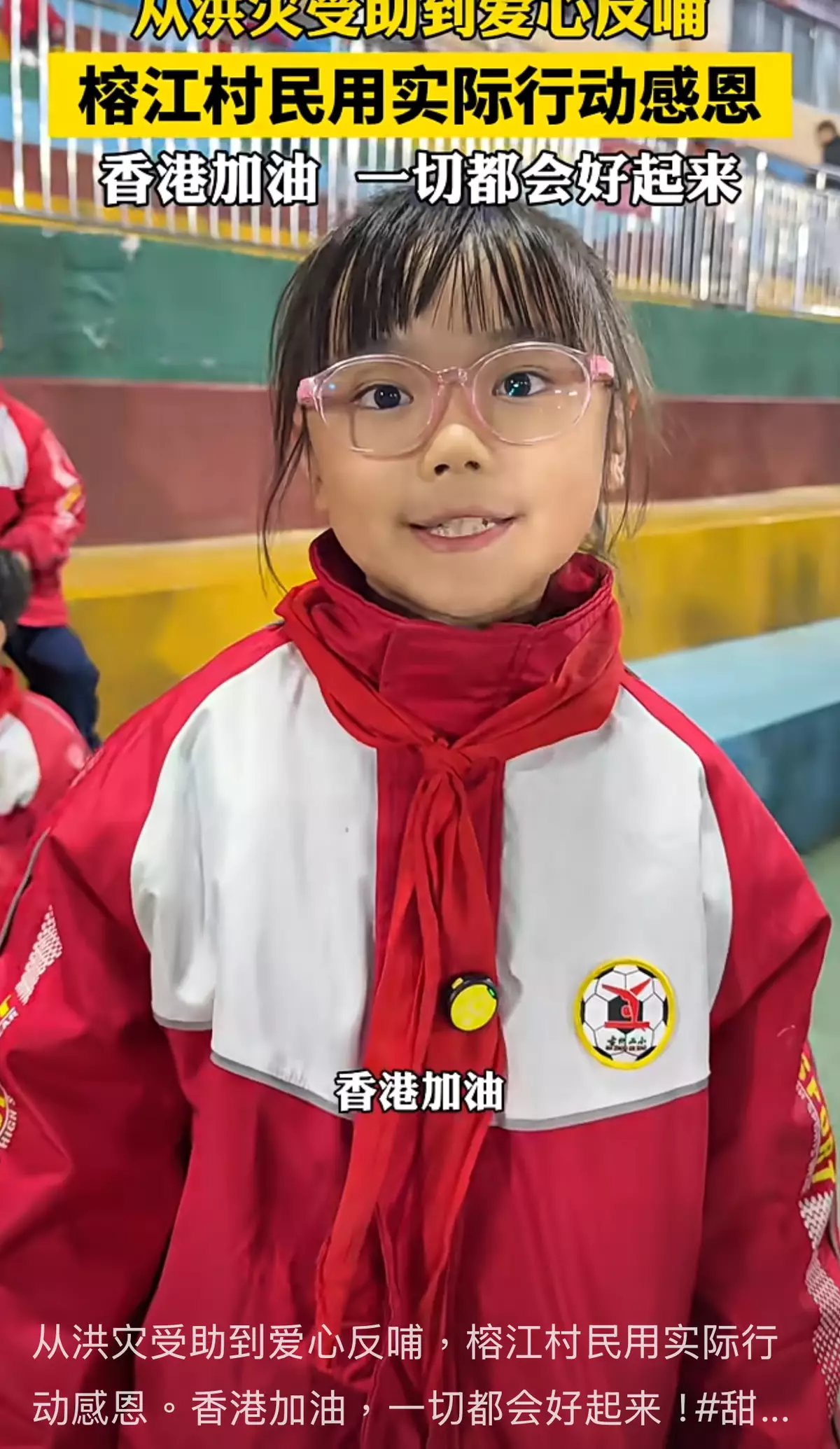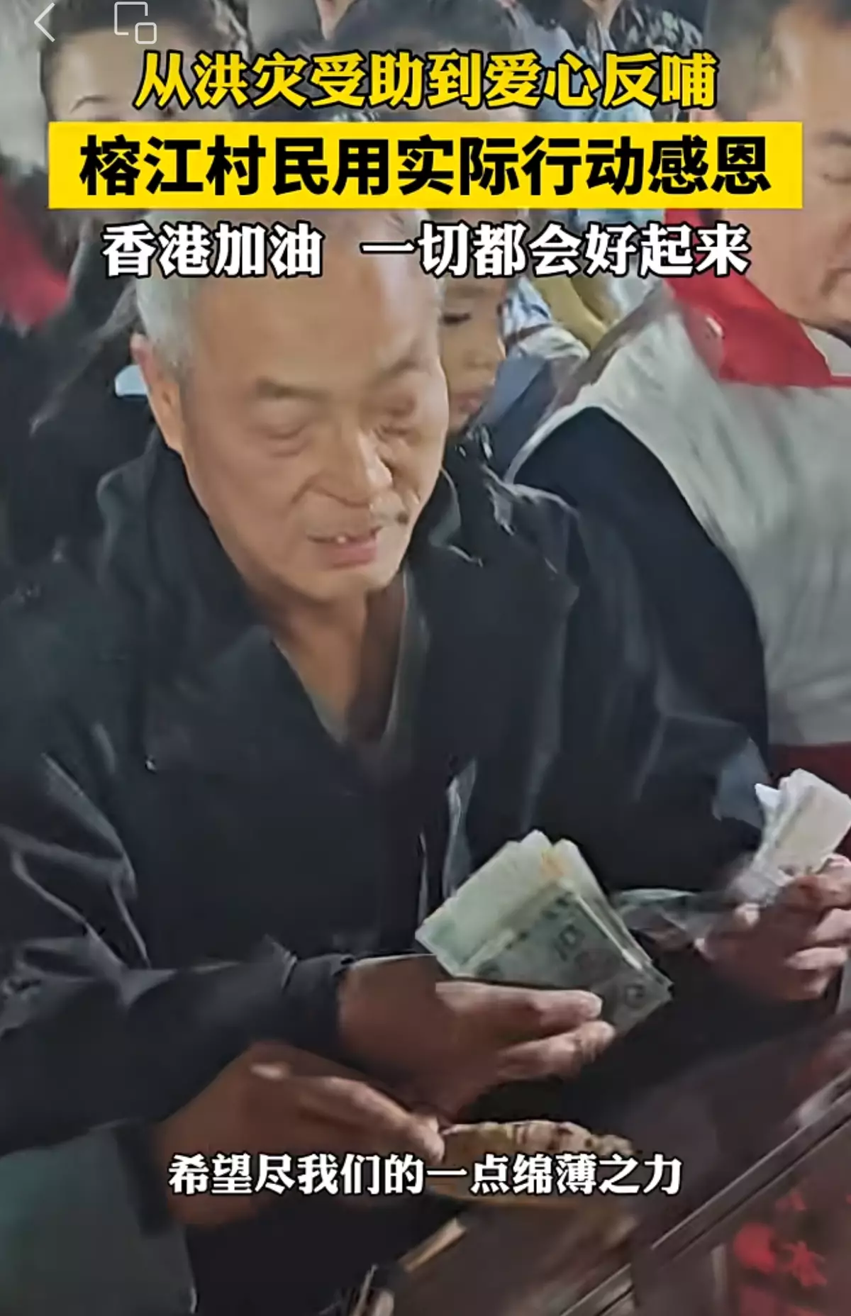 報道指,今年當地曾發生嚴重洪災,不少群眾房屋被衝毀、財產受損失,香港同胞與社會各界及時援手,讓當地民衆在困境中感受溫暖與力量。有受訪民衆表示,感謝香港社會各界大力支持,房屋得以重建,今晚獻微薄之力,希望香港早日恢復。