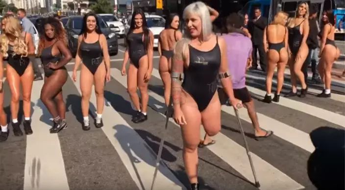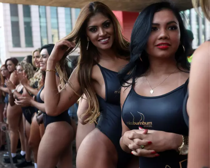 The 27 candidates for 2017 Miss BumBum strode down the streets of Sao Paulo in black swimsuits, catching eyeballs of passersby.