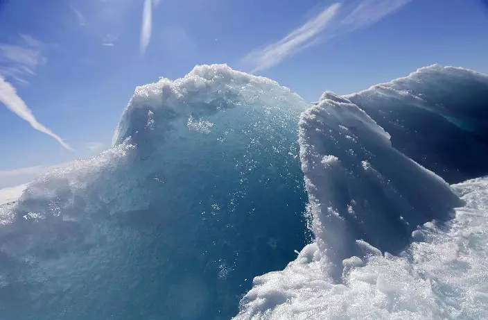 As a general rule, the older ice gets the more it turns blue and acquires mounds, so-called hummocks, on top from years of crashing into other floes.