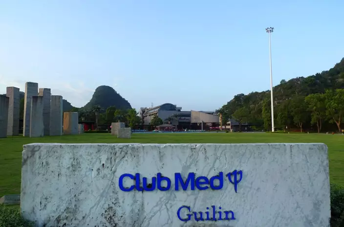 In this Aug. 12, 2016 photo, a sign welcomes visitors to Club Med's resort in Guilin, southwestern China. China is a relatively new and expanding market for the Western holiday company, which has opened four resorts in the country since 2010 and was taken over in 2015 by Chinese conglomerate Fosun. (AP Photo/Kelvin Chan)