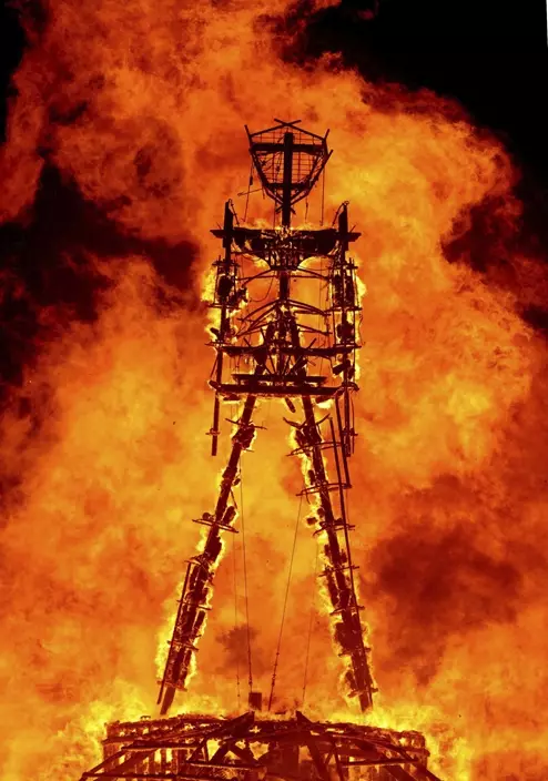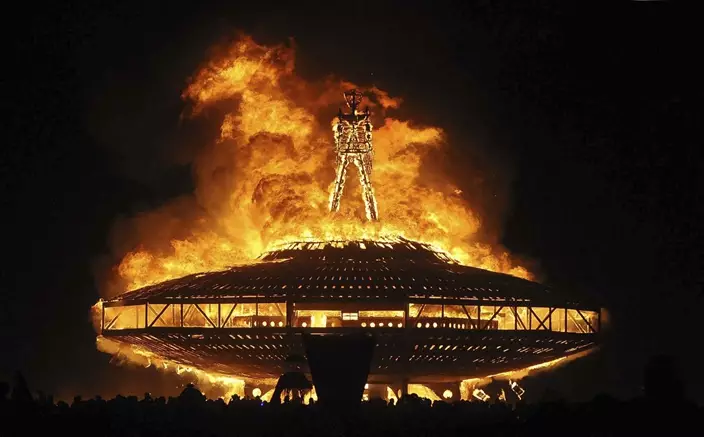 The festival culminates with the burning of a towering 40-foot effigy made of wood, a symbol of rebirth, which usually happens the Saturday before the Labor Day holiday. It's followed by the burning of a temple on Sunday before the festivities wrap up Monday.