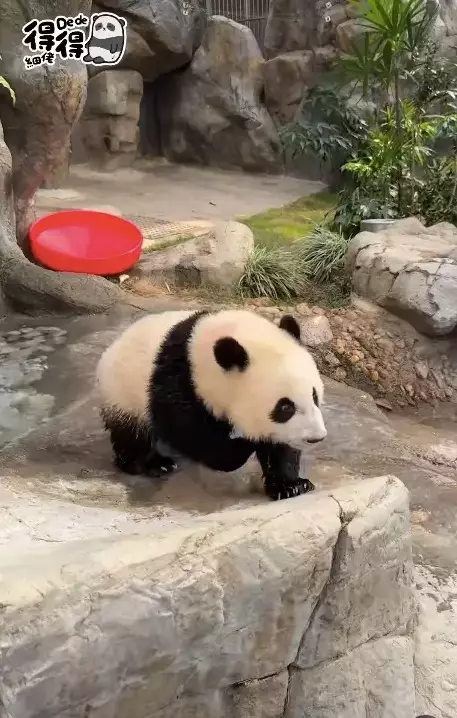 In the latest video on Ocean Park's social media platform, the elder sister Jia Jia has taken her first step out. Although she was a little curious about the waterfall and the stream, she was still not afraid of the new challenge and stepped into the water bravely. She even climbed up and down for exploration around. Seeing his elder sister having a great time, the little brother De De also joined her in enjoying the fun of playing in the water. He even ate while playing and wasn't afraid of turning into a wet panda.