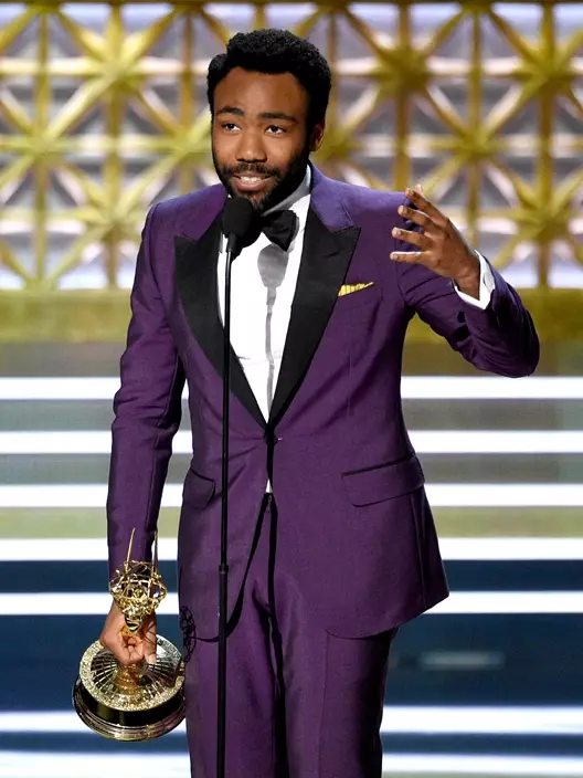 Donald Glover accepts the award for outstanding directing for a comedy series for the "Atlanta" episode "B.A.N." at the 69th Primetime Emmy Awards on Sunday, Sept. 17, 2017, at the Microsoft Theater in Los Angeles. (Photo by Chris Pizzello/Invision/AP)