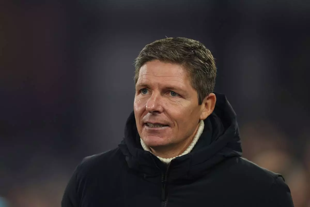 FILE - Crystal Palace's head coach Oliver Glasner waits for the start of the English Premier League soccer match between Crystal Palace and Tottenham Hotspur in London, Sunday, Dec. 28, 2025. (AP Photo/Ian Walton)