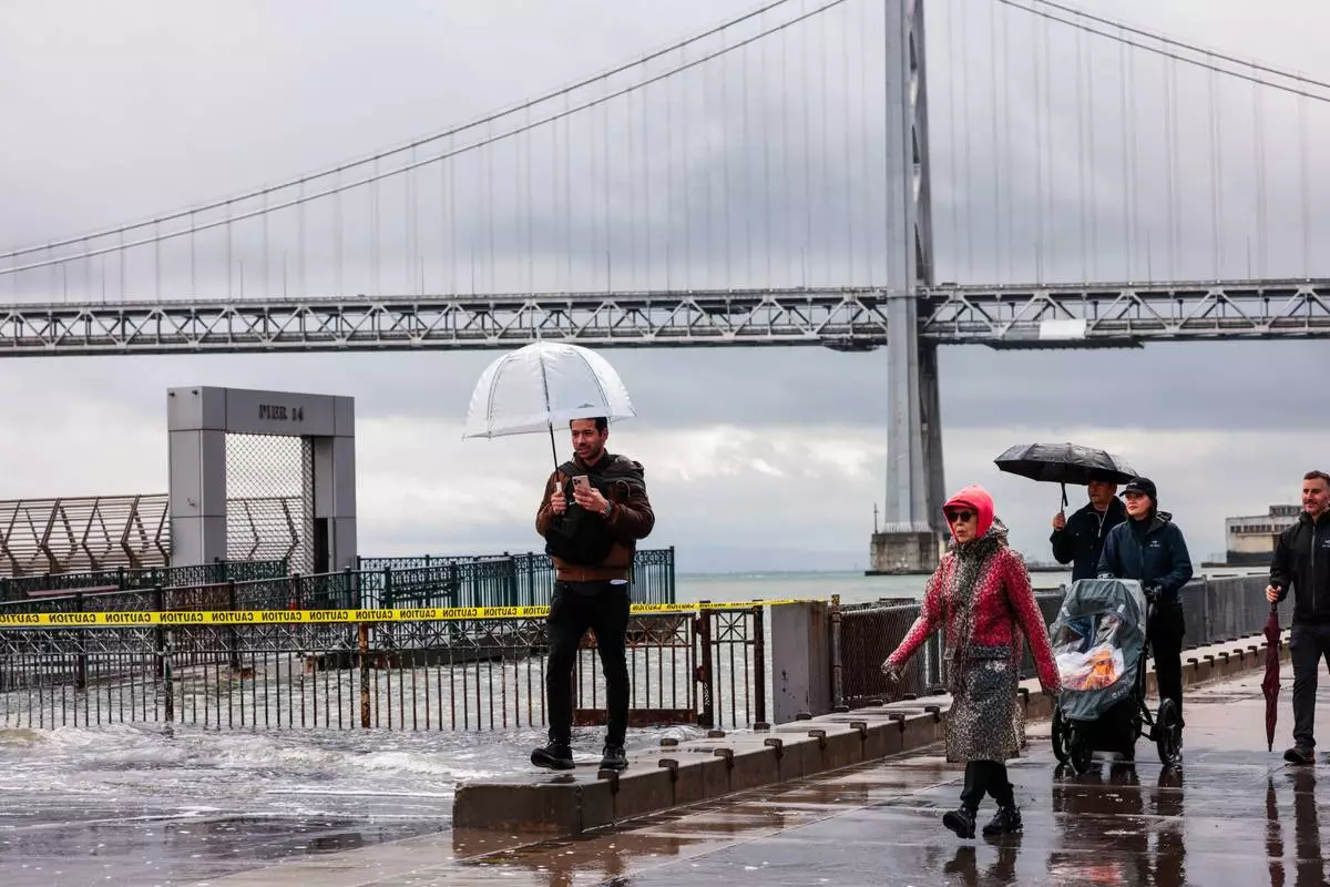 People shield themselves from the rain Saturday, Jan. 3, 2026, in San Francisco. (Yalonda M. James/San Francisco Chronicle via AP)