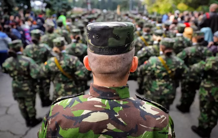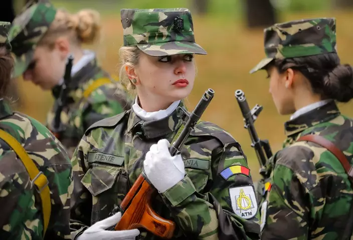 Service members in uniform gathered in Carol Park in the capital of Bucharest on Wednesday, where a trio of military jets flew over a war memorial on a clear, sunny day. The celebration was also a relaxed occasion: troops took selfies, embraced loved ones and clutched bouquets of flowers.