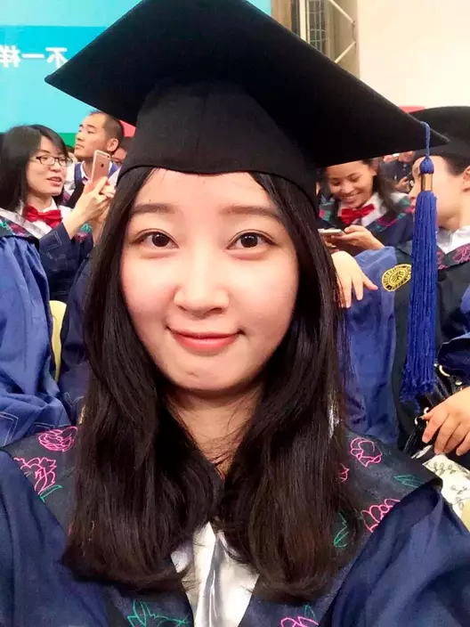This 2016 selfie photo provided by her family shows Yingying Zhang in a cap and gown for her graduate degree in environmental engineering from Peking University Shenzhen Graduate School. She chose the University of Illinois at Urbana-Champaign for its highly regarded agriculture program. Zhang had been doing research on crop photosynthesis and was to begin her doctoral work in September 2017. (Family Photo via AP)
