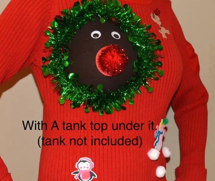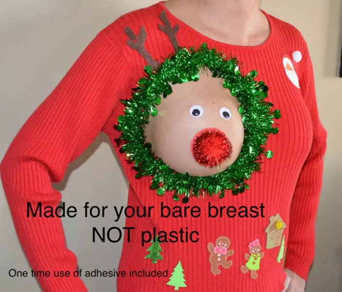 Retailer YourSassyGrandma sells several pre-made versions online. They said, 'If you want to stand out at your Ugly Sweater Party, then this SEXY reindeer ugly Christmas sweater is for you!'