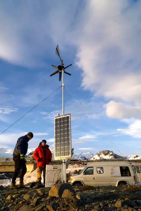 At a seismographic station, the team digs up the equipment and celebrates that it’s still working. They download its data and rebury it.