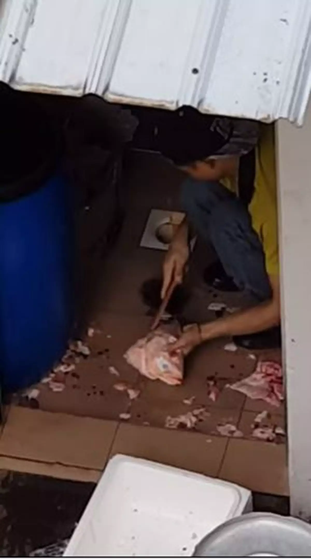 In the video, the worker can be seen knifing the fish on the dirty floor, right next to an open drain. At the same time, the worker in the video told the joke that this would make the fish more delicious.