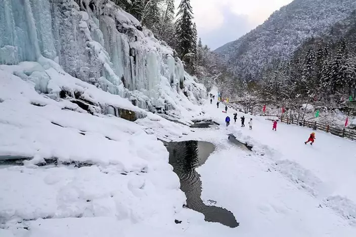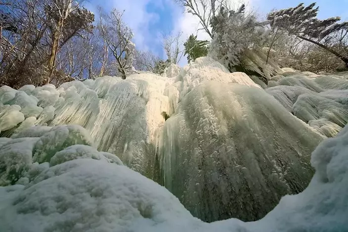 In Northeast China's Jilin Province, the 2051-meter-high Wangtiane Mountain provides a unique landscape of white snow, soft frosted trees and icefalls for winter tourists and photographers. Tourists can enjoy the marvelous natural scenery in a white fairyland for the whole winter.