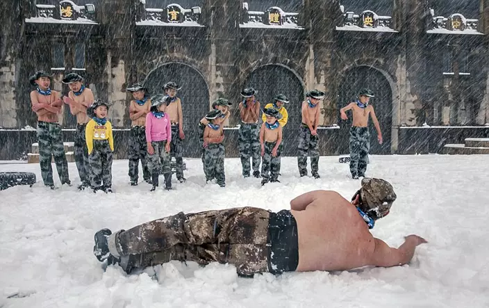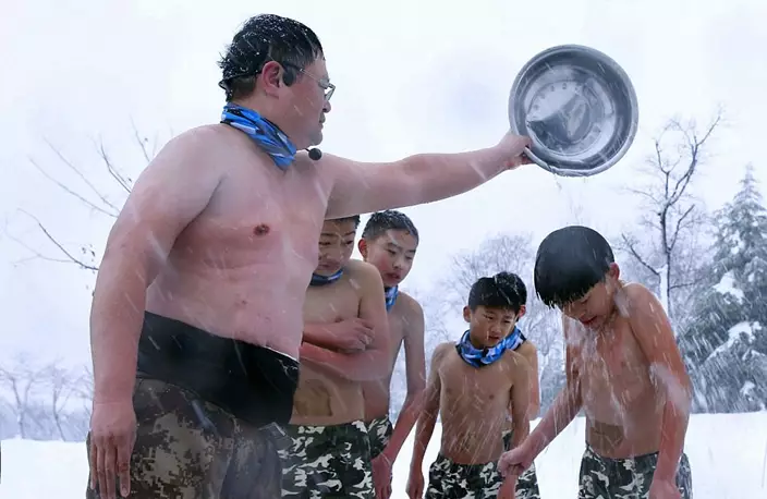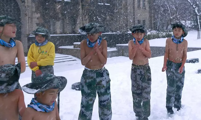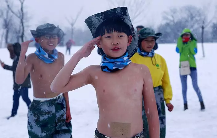 Liesheng said children should be trained to have an iron will from an early age and exercising in adverse weather is helpful(Imaginechina/REX/Shutterstock)