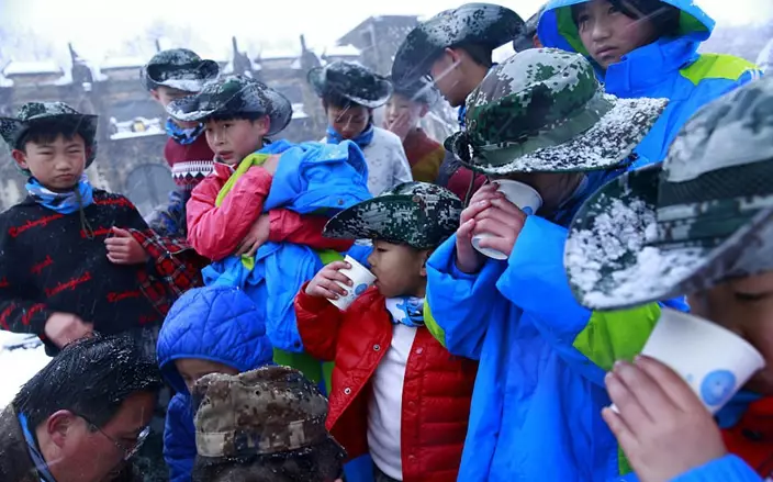 The children are given ginger soup to drink by He Liesheng during the tough training so they could warm up their bodies(Imaginechina/REX/Shutterstock)