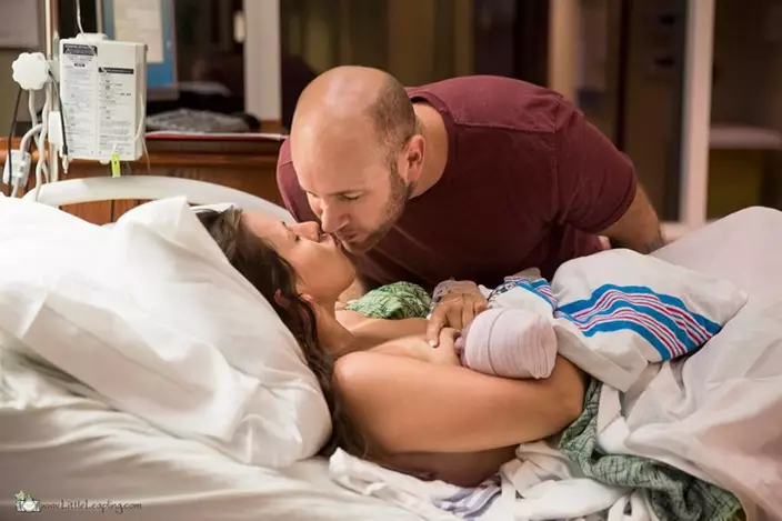 Her husband, Travis was prepared and got her in the car and on the way to the hospital, giving Jes the opportunity to call Tammy Karin, her birth photographer, to come recording the precious moments.