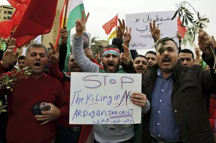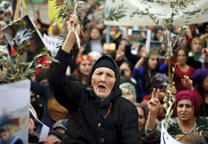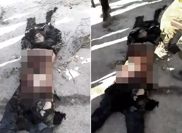 A 23-year-old Syria Kurdish female soldier, Barin Kobani, was killed by the anti-government army. Her clothes were raised, showing the chest, and her body was badly mutilated with hands missing