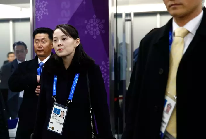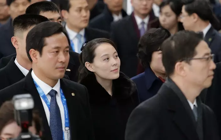Kim Yo Jong, sister of North Korean leader Kim Jong Un, arrives at the opening ceremony of the 2018 Winter Olympics in Pyeongchang, South Korea, Friday, Feb. 9, 2018. (AP Photo/Patrick Semansky, Pool)
