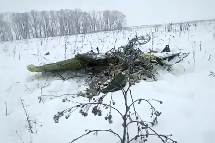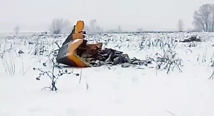 TV footage from the crash site showed airplane fragments lying in the snow. Reports said the pieces were strewn over an area about a kilometer (0.6 miles) wide.