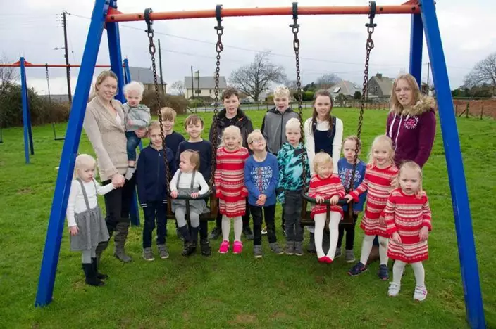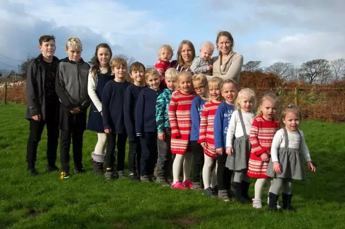 31-year-old Amy Green and 29-year-old Chloe Green live respectively with 8 kids in a village, Gwynedd.