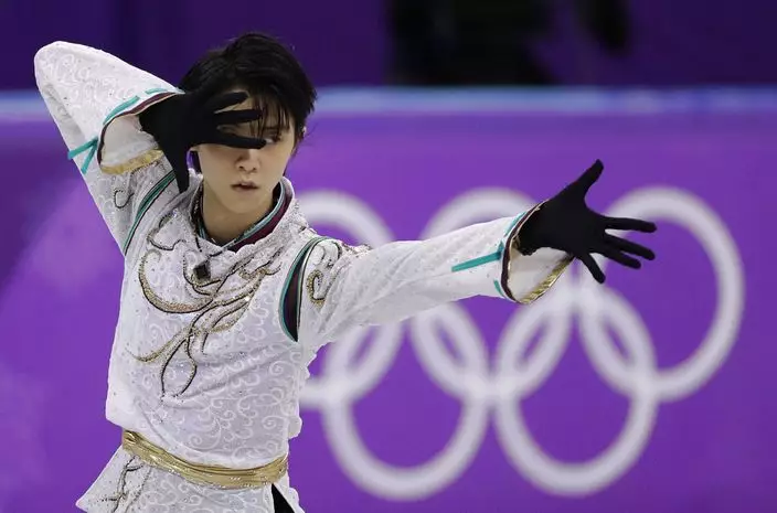 Yuzuru Hanyu of Japan performs during the men's free figure skating final in the Gangneung Ice Arena at the 2018 Winter Olympics in Gangneung, South Korea, Saturday, Feb. 17, 2018. (AP Photo/David J. Phillip)