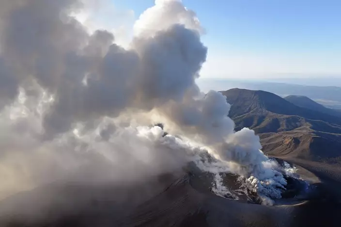 Public broadcaster NHK showed gray volcanic smoke billowing into the sky and orange lava rising to the mouth of the crater. The Meteorological Agency said ash and smoke shot up 2,300 meters (7,500 feet) into the sky in the volcano's biggest explosion since 2011.
