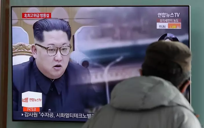 A man watches a TV screen showing file images of North Korean leader Kim Jong Un during a news program at the Seoul Railway Station in Seoul, South Korea, Tuesday, March 27, 2018. (AP Photo/Lee Jin-man)