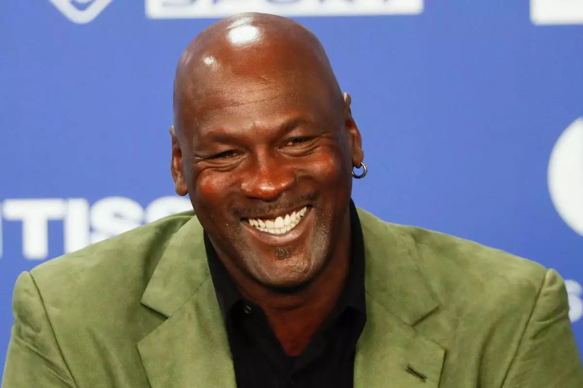 FILE - Basketball legend Michael Jordan speaks during a press conference ahead of an NBA basketball game between the Charlotte Hornets and Milwaukee Bucks in Paris on Jan. 24, 2020. (AP Photo/Thibault Camus, File)