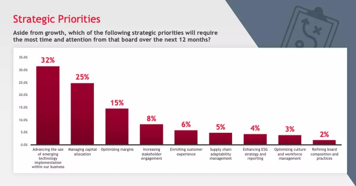 BDO USA released its 2025 Board Survey today, an annual report that polled over 200 public company board directors on their priorities and challenges in the coming year. As digital innovation continues to dominate boardroom agendas, many directors feel pressure to demonstrate returns on their technological investments — a challenge increased by changing workforce adoption needs. According to BDO’s survey, nearly one-third (32%) of directors feel that advancing the use of emerging technology implementation will require the most board time and attention in the next year, and 23% still believe their tech implementation lags competitors.