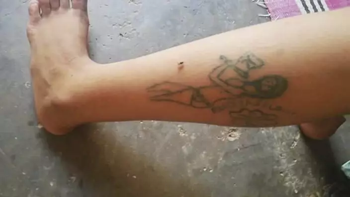 This undated photo provided by febrayer.com website shows tattoo marks on a 17-year-old Moroccan girl who told police she was gang-raped, forcibly tattooed and held against her will for two months, near Beni Melal, central Morocco. The girl's lawyer says authorities have arrested 12 suspects in a case that's sparking fresh public outcry over women's rights and sexual abuse in the North African kingdom. The Moroccan government has so far declined to comment on the girl's harrowing account. Local police confirmed to The Associated Press that there have been arrests in the case, but wouldn't say how many or give details. (Febrayer.com via AP)