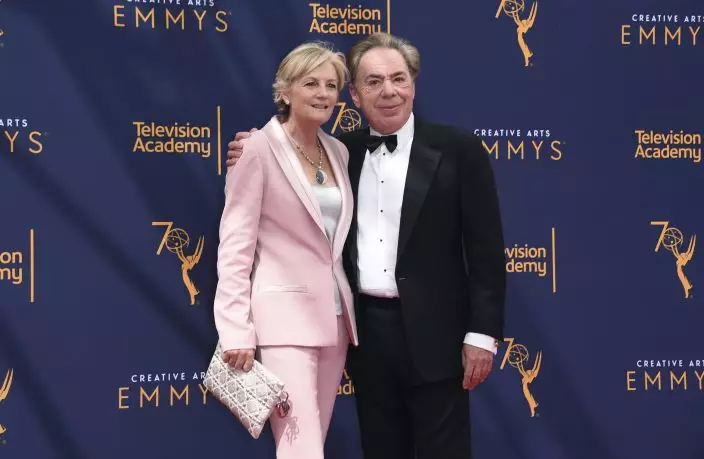 Madeleine Gurdon, left, and Andrew Lloyd Webber arrive at night two of the Creative Arts Emmy Awards at The Microsoft Theater on Sunday, Sept. 9, 2018, in Los Angeles. (Photo by Richard ShotwellInvisionAP)