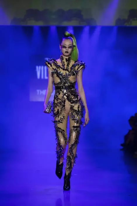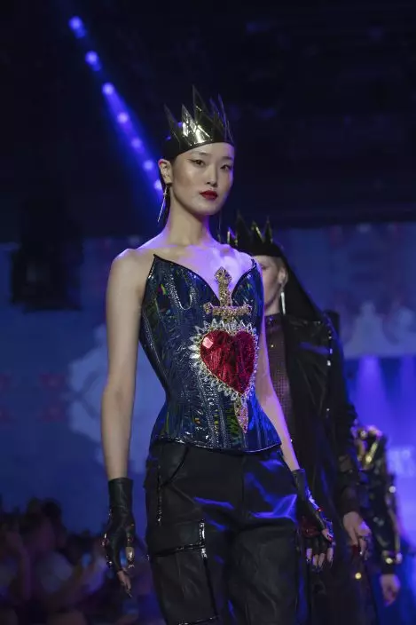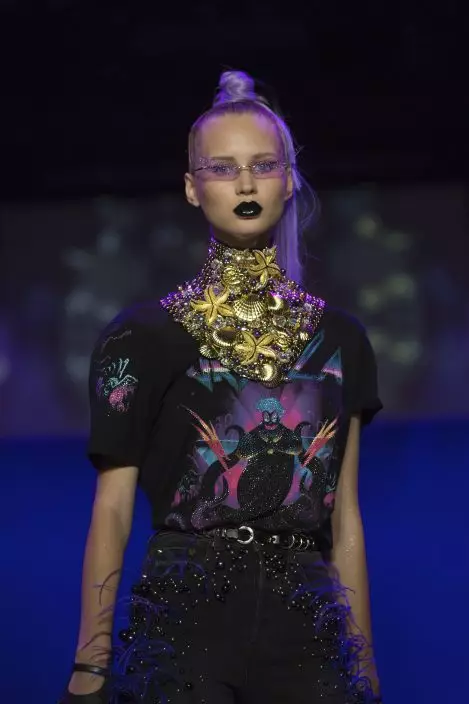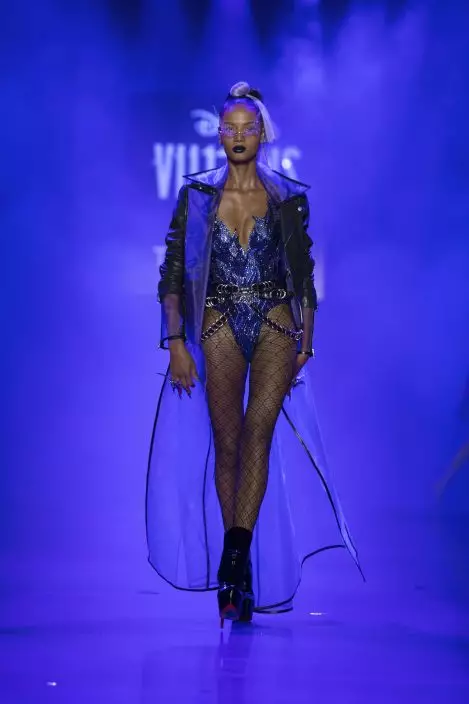 Bejeweled bodices, thigh-high platform pumps, stiletto nails and seductive fishnet stockings brought a new level of femme fatale among Disney villains onto the catwalk.