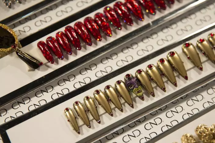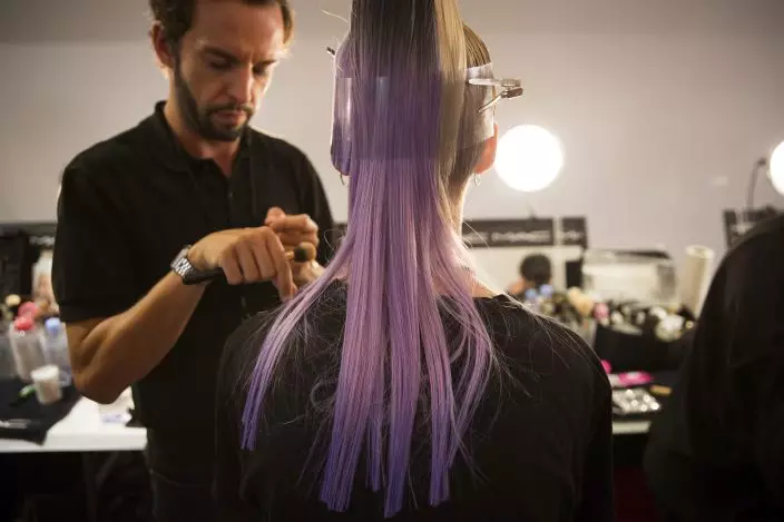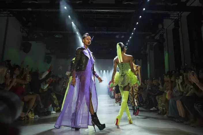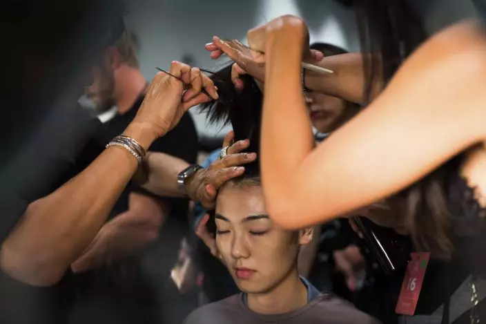 Models prepare backstage for the presentation of the Blonds spring 2019 collection during Fashion Week Friday, Sept. 7, 2018, in New York. (AP PhotoKevin Hagen)