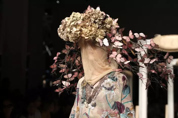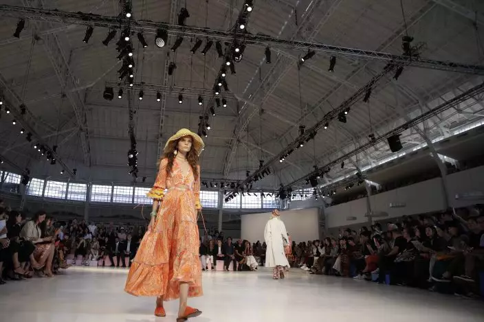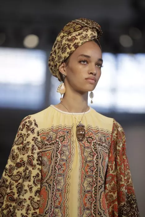 A model wears a creation as part of the Etro women's 2019 Spring-Summer collection, unveiled during the Fashion Week in Milan, Italy, Friday, Sept. 21, 2018. (AP PhotoLuca Bruno)