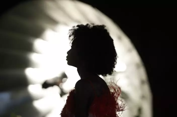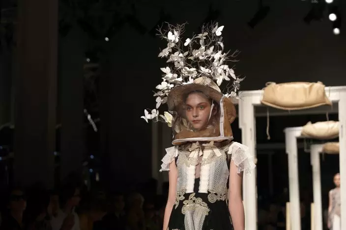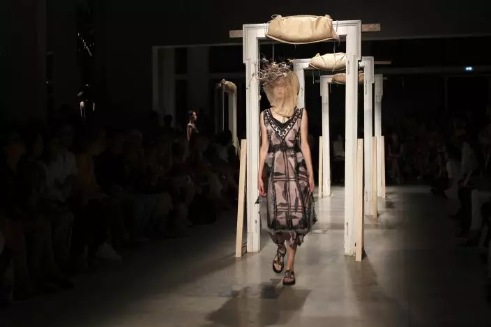 A model wears a creation as part of the Marras women's 2019 Spring-Summer collection, unveiled during the Fashion Week in Milan, Italy, Friday, Sept. 21, 2018. (AP PhotoAntonio Calanni)
