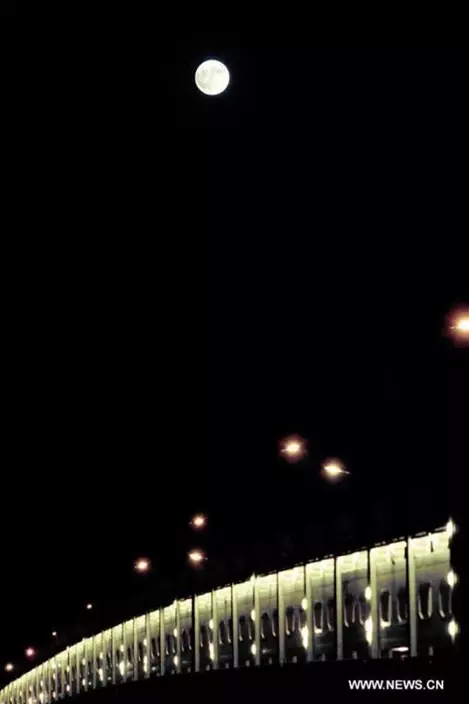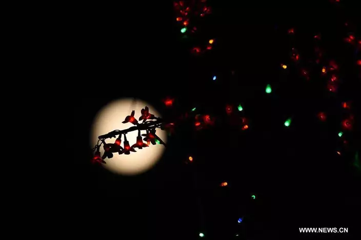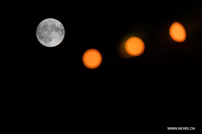 Photo taken on Sept. 24, 2018 shows the full moon at Nanhu park in Changchun, capital of northeast China's Jilin Province.