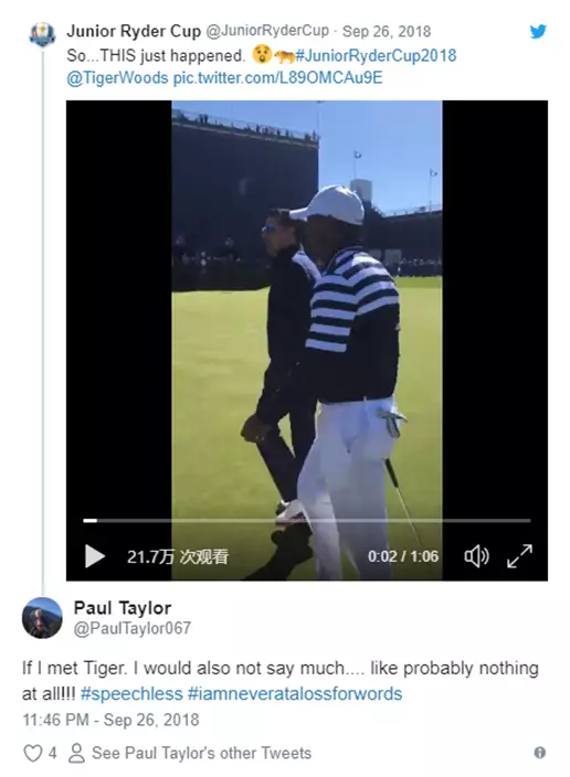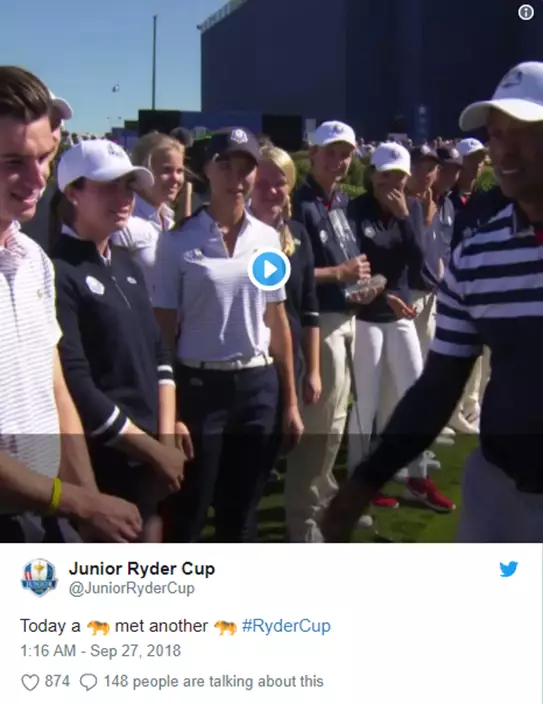 A junior golfer from England who is named after Tiger Woods was delighted to meet his namesake ahead of the 2018 Ryder Cup.