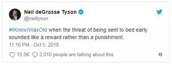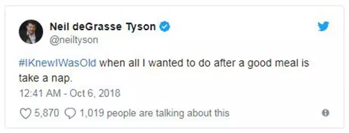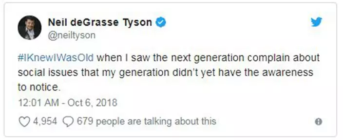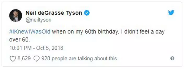 The American astronomer and science communicator took it upon himself to tweet the #IKnewIWasOld hashtag 22 times.