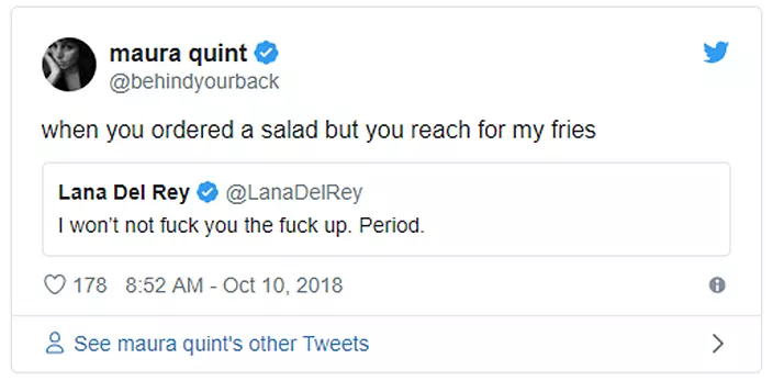 The fiery feud has raged on and become increasingly personal, but it is Del Rey’s potent mixture of F-bombs and a double negative that has been shared most and now even become a meme.