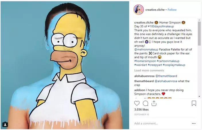The make-up artist has created characters from the Simpsons, Futurama, Rugrats and more, and takes up to eight hours to perfect a look.