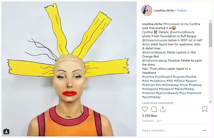 She said: “After getting really into a special effects make-up show (Face Off) I thought that I wanted to be a special effects make-up artist. I started an Instagram page of me practising different looks, but then one day just for fun I did a recreation of the character Cynthia from Rugrats and people loved it!