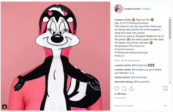 She has enjoyed drawing cartoons since she was a child and has been creating cartoon characters out of face paint for a year.