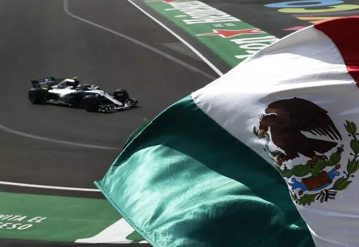 Mercedes driver Lewis Hamilton, from Great Britain, drives in a practice run prior to Sunday's Formula One Mexico Grand Prix auto race at the Hermanos Rodriguez racetrack in Mexico City, Friday, Oct. 26, 2018. (AP PhotoMarco Ugarte)