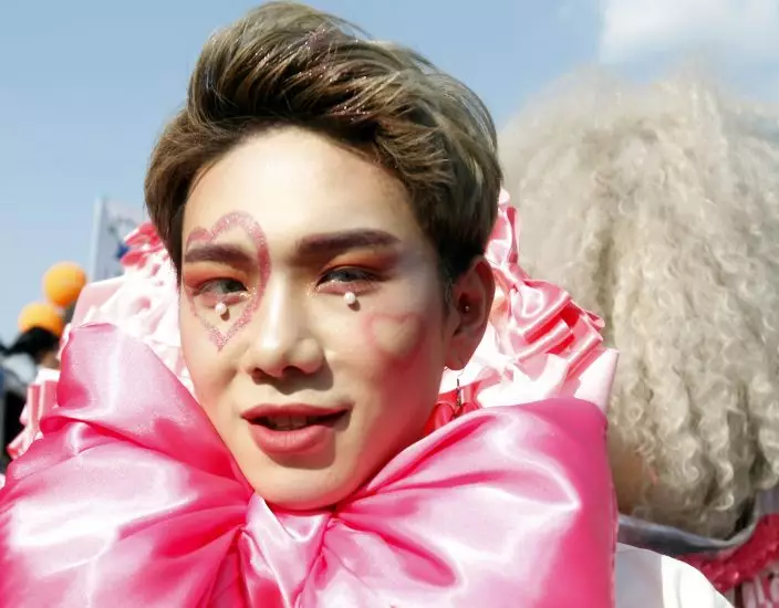 A participant poses on a street during the annual gay and lesbian parade, organized by Taiwan LGBT Pride, in Taipei, Taiwan, Saturday, Oct. 27, 2018. (AP PhotoChiang Ying-ying)