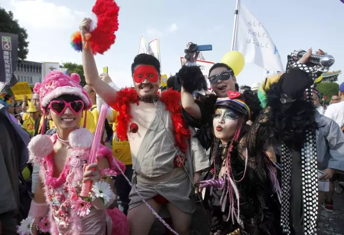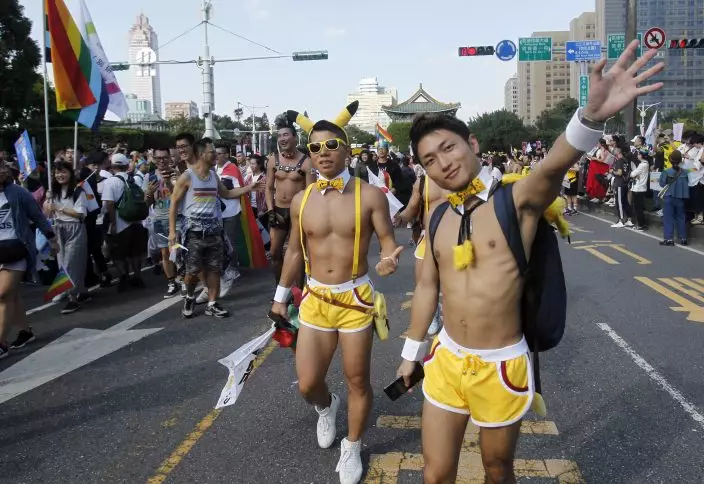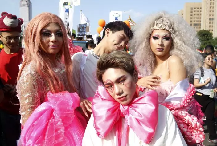 Costumed participants pose on a street during the annual gay and lesbian parade, organized by Taiwan LGBT Pride, in Taipei, Taiwan, Saturday, Oct. 27, 2018. (AP PhotoChiang Ying-ying)