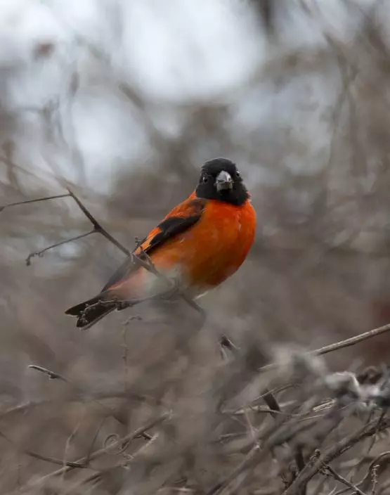 The tiny bird is prized for its fiery red plumage and jet-black hood on males, coveted by breeders who cross them with less colorful canaries to produce offspring of orange or red spots.