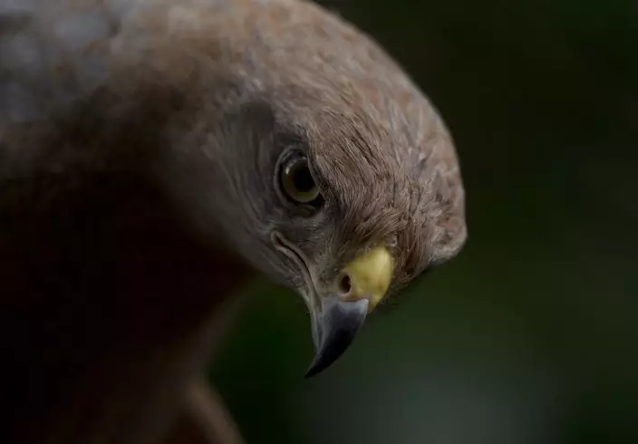 In this Oct. 18, 2018, a Savanna Hawk peers from inside its cage at a private zoo that is building an investigation center to breed Venezuela's endangered red siskin bird in Turmero, Venezuela. The threat of the red siskin disappearing has brought together an international team including scientists from the Smithsonian Institution in Washington and poor coffee farmers in Venezuela's remote mountains, all set on rescuing it from extinction. (AP PhotoFernando Llano)