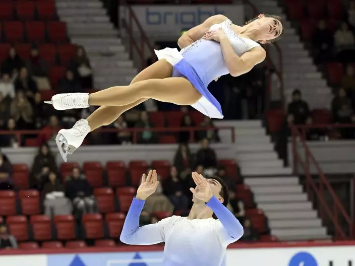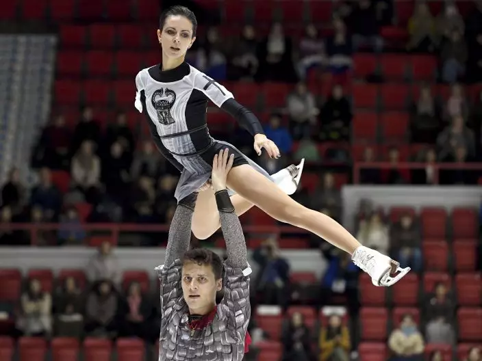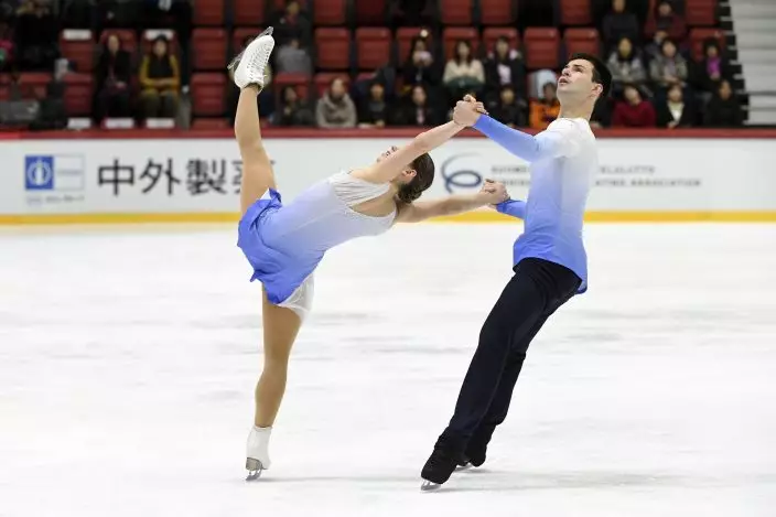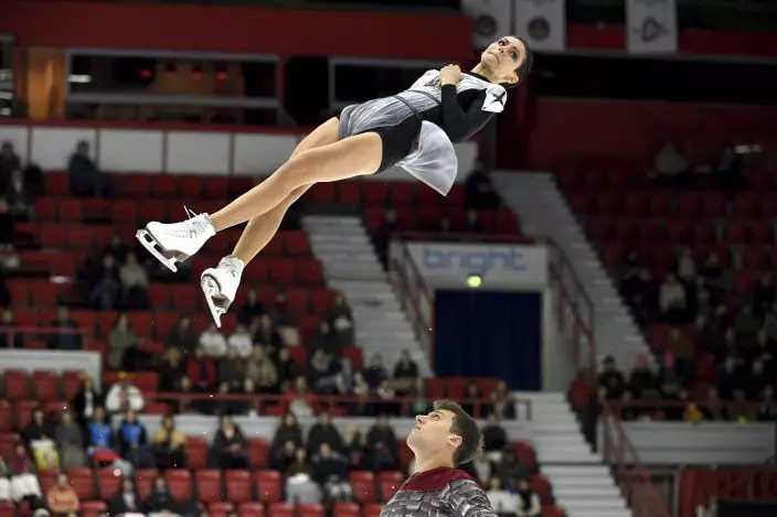 Miriam Ziegler and Severin Kiefer of Austria perform their routine during the pairs' short program at the figure skating Helsinki Grand Prix event in Helsinki, Finland, Friday, Nov. 2, 2018. (Markku UlanderLehtikuva via AP)