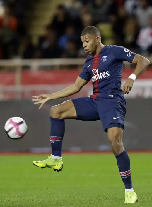 PSG's Kylian Mbappe controls the ball during the French League One soccer match between AS Monaco and Paris Saint-Germain at Stade Louis II in Monaco, Sunday, Nov. 11, 2018 (AP PhotoClaude Paris)