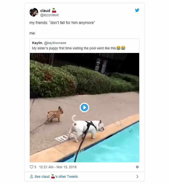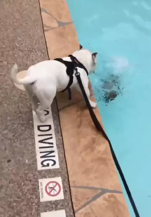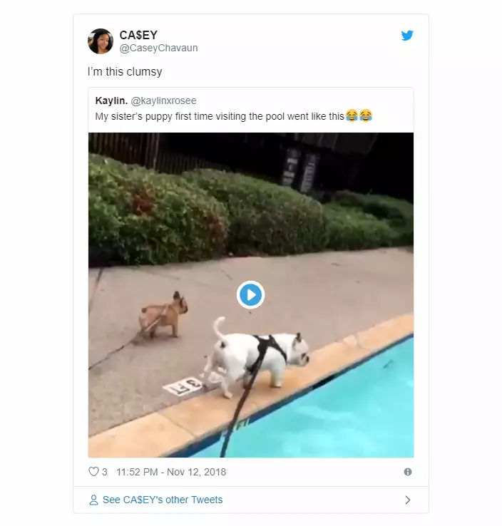 Posting the adorably unfortunate video to Twitter, user Kaylin said: “My sister’s puppy first time visiting the pool went like this…”