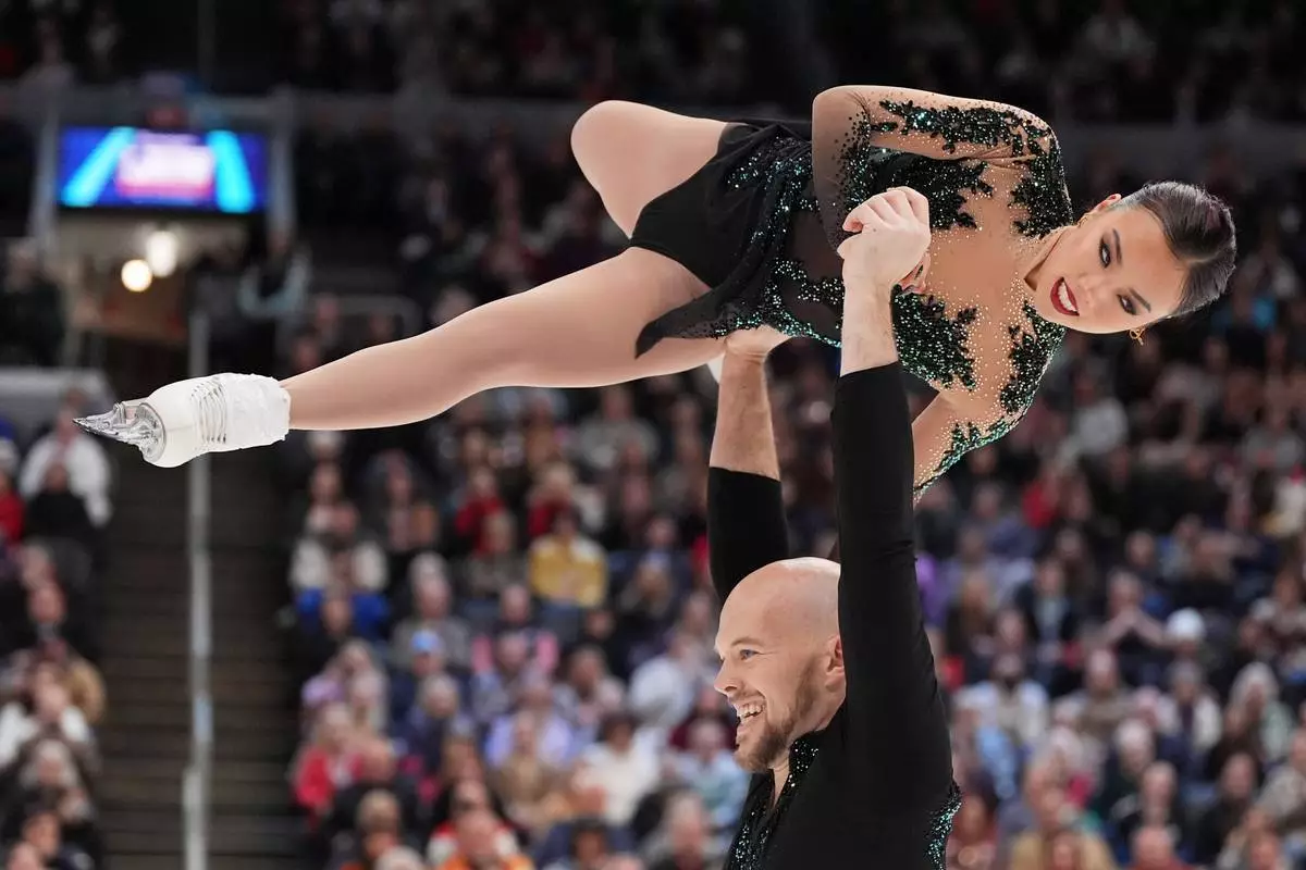 Katie McBeath and Daniil Parkman compete during the pairs free skating competition at the U.S. Figure Skating Championships, Friday, Jan. 9, 2026, in St. Louis. (AP Photo/Jeff Roberson)