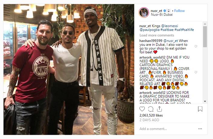 Both Lionel Messi and Paul Pogba dined out at the same restaurant this week, but they weren’t the only famous people in the building.